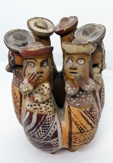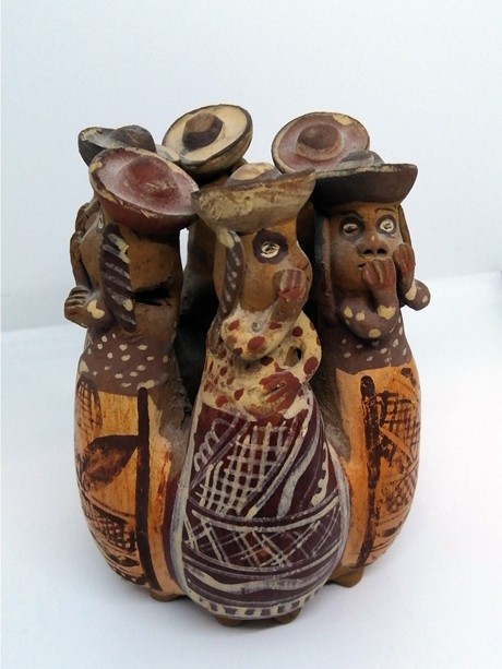 Magasság 14,5 cm, átmérő 11,5 cm, anyaga: cserép földfestékkel, állapota jó-kopottas