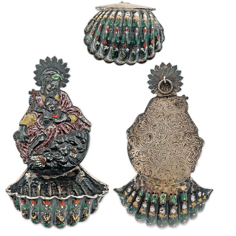 Bécs, 1872-1922 közötti kis ezüst fémjel, 750 ezrelékes ezüst, Hugo Rohrwasser (működött 1873-1924) mesterjegy, domborított, mindkét oldalán vésett, poncolt díszítéssel, fényes zománcfestéssel, kis %