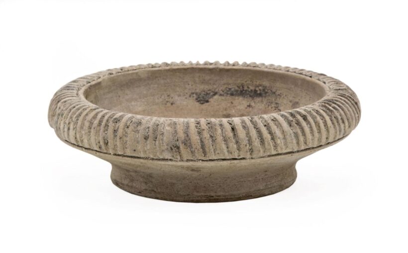 Itália, Kr.e .4. század, égetett vörösagyag, rovátkált peremmel, apró sérülésekkel, d: 11,5 cm