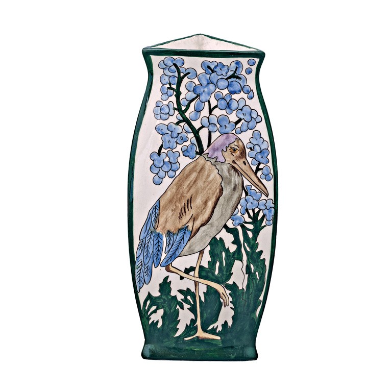 Hollóháza, 20. sz. eleje, Lakatos Artúr (1880-1968) terve, festett fehércserép, jelezve az alján: Riolit Hollóháza, formaszám: D1301, talpánék restaurált, m: 23 cm