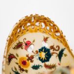Ár: 150 000 FtZsolnay manufaktúra, 12 x 6 cm, Porcelánfajansz, formázott füllel és áttört palásttal díszfestve, 1880-1890