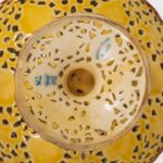 Ár: 85 000 FtZsolnay manufaktúra, 6,5 x 6,5 cm, Porcelánfajansz, korongozva áttört palást díszítéssel, 1875-1885