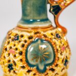 Ár: 85 000 FtZsolnay manufaktúra, 28 x 20 cm, Porcelánfajansz, áttört szerkezetű fülezéssel, kontúrmentes korai díszfestéssel, 1885-1895