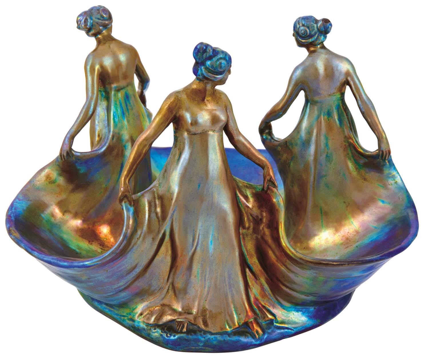 Zsolnay: Dísztál táncoló nőalakokkal, 1904 körül, Formaterv: Mack Lajos, 1904
