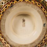 Ár: 85 000 FtZsolnay manufaktúra, 11 x 17 x 11 cm, Porcelánfajansz, korongozással formázott, áttört és diszfestéssel gazdag, 1873 - 1882