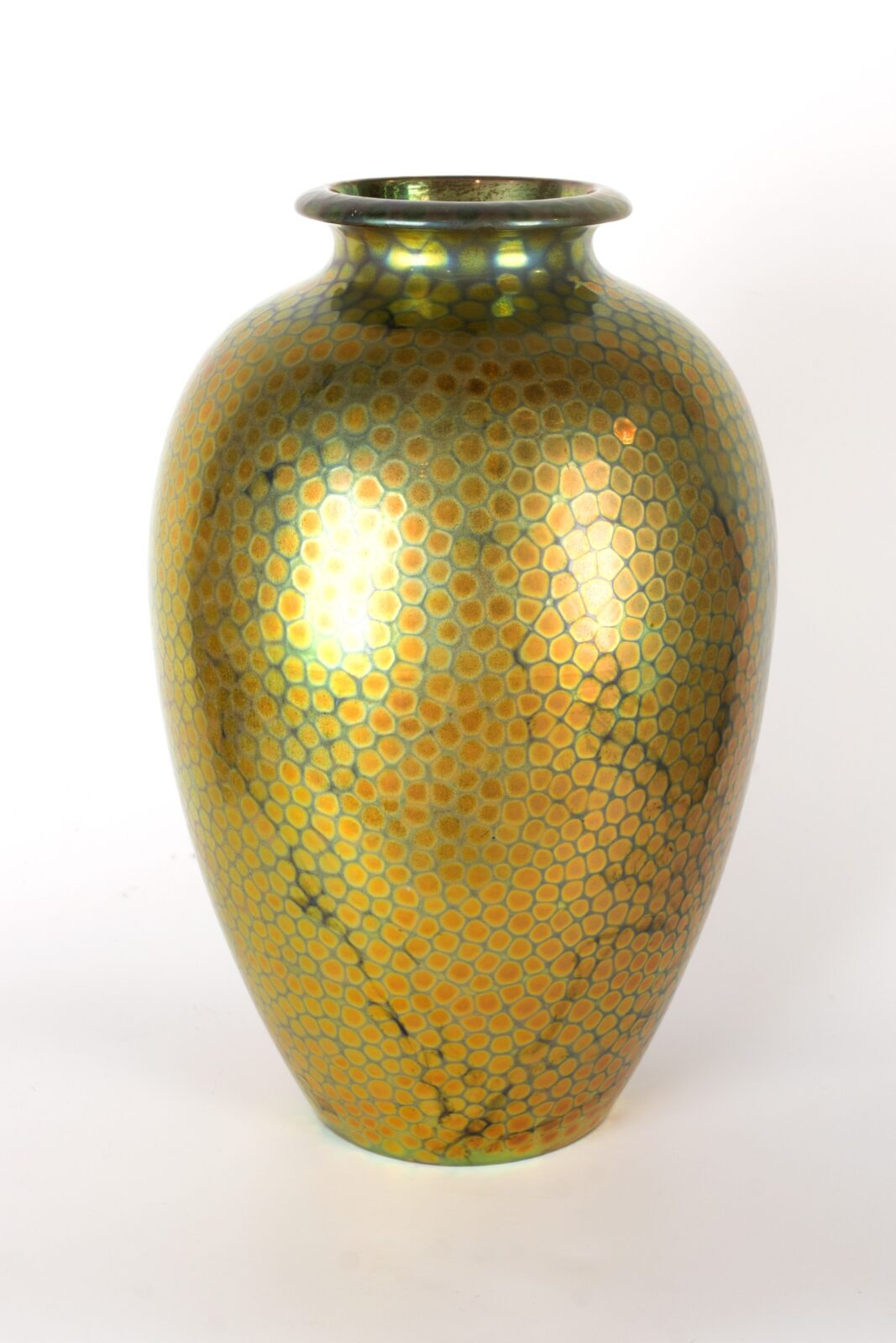 Zsolnay: Díszváza, eozin vázakkal, pettyezett mintás