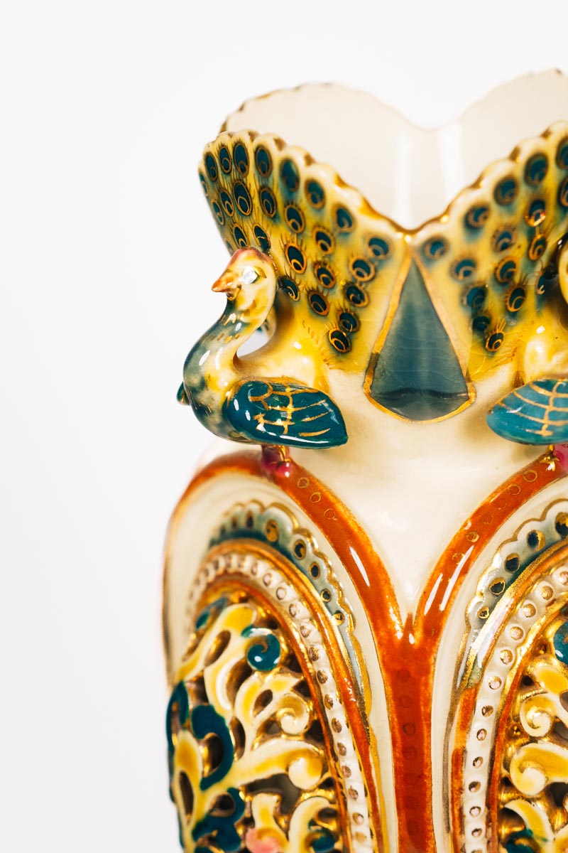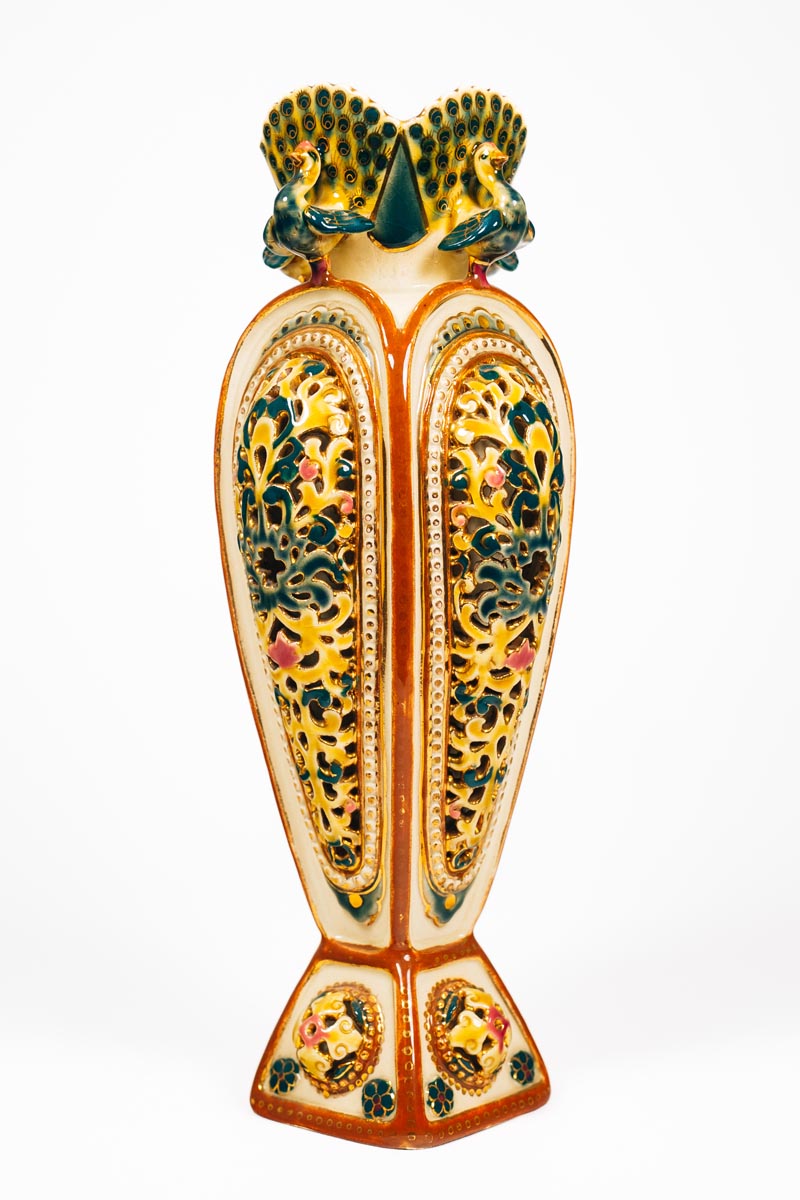 Zsolnay – Díszváza pávaszobros nyakkal I.