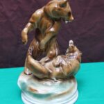 Zsolnay játszó medvék porcelán szobor.