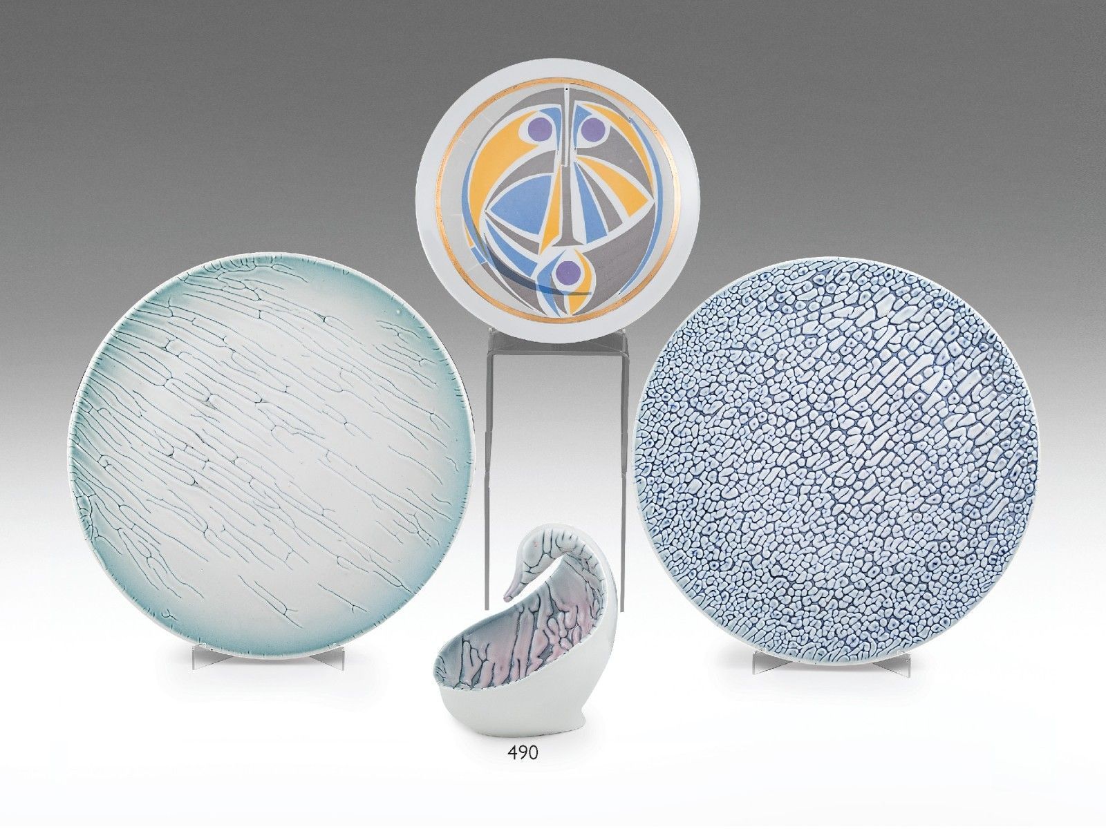 Formába öntött porcelán, felületén színes, kísérleti mázakkal fedett.