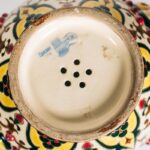 Ár: 48 000 FtZsolnay manufaktúra, 40 x 20 cm, Porcelánfajansz, plasztikus fülformázás, áttört talpazat, kecses formakorongozás, orientális motívumokkal díszfestve, 1885-1890