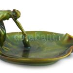 Zsolnay névjegykártyatartó vizet merítő nő alakkal. Eozin mázakkal borított porcelánfajansz. Jelzett, hibátlan, 29,5×25,5×15 cm, ilyen méretben kuriózum!