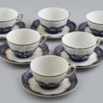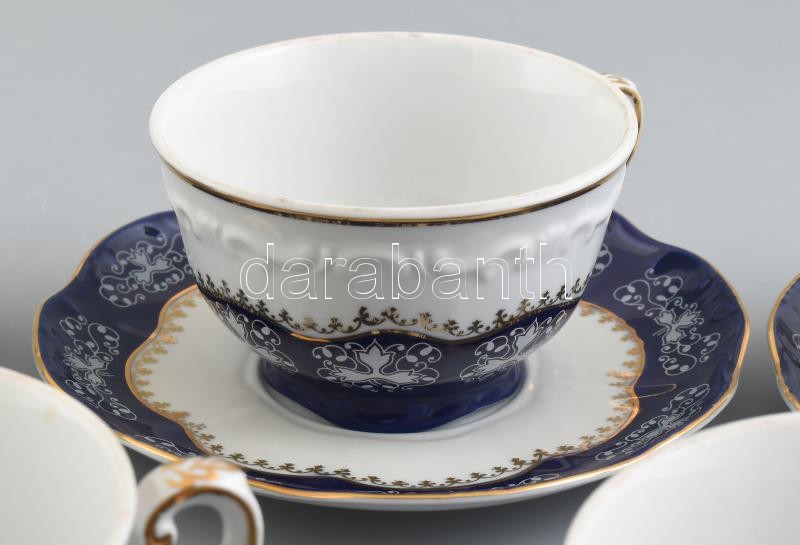 Zsolnay Pompadour mintás teás csésze 6 db, teljes, kézzel festett, kopásnyomokkal, jelzett.