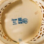 Ár: 65 000 FtZsolnay manufaktúra, 17 x 12 cm, Porcelánfajansz, korongozott - áttört palást, kontúrozással diszfestve, 1885 - 1890