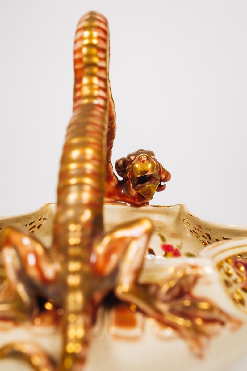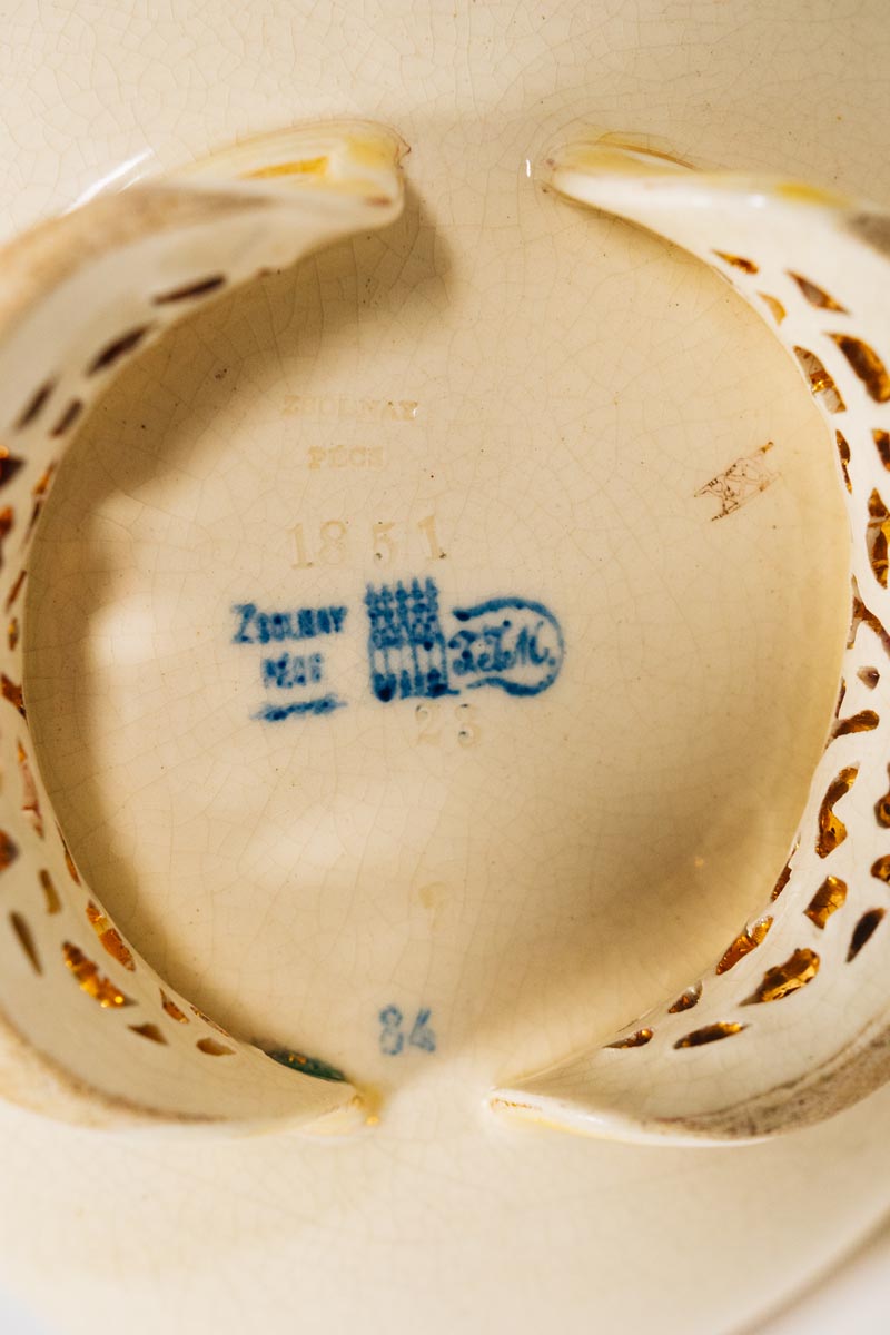 Ár: 180 000 FtZsolnay manufaktúra, 32 x 25 x 19 cm, Porcelánfajansz, 1885 körül