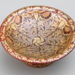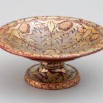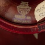 Fehércserép, színes és fémes eozinokkal festett növényi dekor. Alján márka jelzéssel, masszába nyomott 4838 vagy 4338 (formaszámmal), m:6 cm, d:15 cm Irodalom, analógia: Csenkey Éva – Hárs Éva – Weiler Árpád: Zsolnay – A gyűjtők könyve Corvina, 2003. 27. oldal, 21. sz. kép, valamint 258. oldal.
