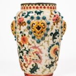 Ár: 60 000 FtZsolnay manufaktúra, 48 x 24 cm, Porcelánfajansz, mesterien korongformázott design, perzsa motívumokkal díszfestve, 1875-1885