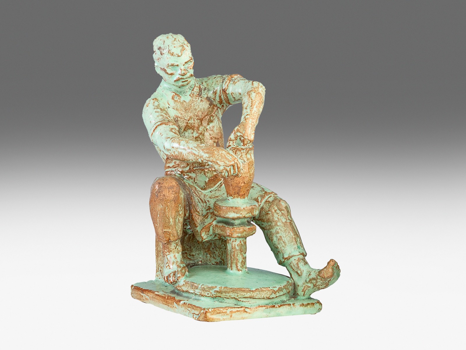 Gádor Magda (Budapest, 1923) Kisplasztika – A keramikus Kézzel formázott, mázas kerámia. Jelzés nélkül. 1930 körül. M.: 18 cm