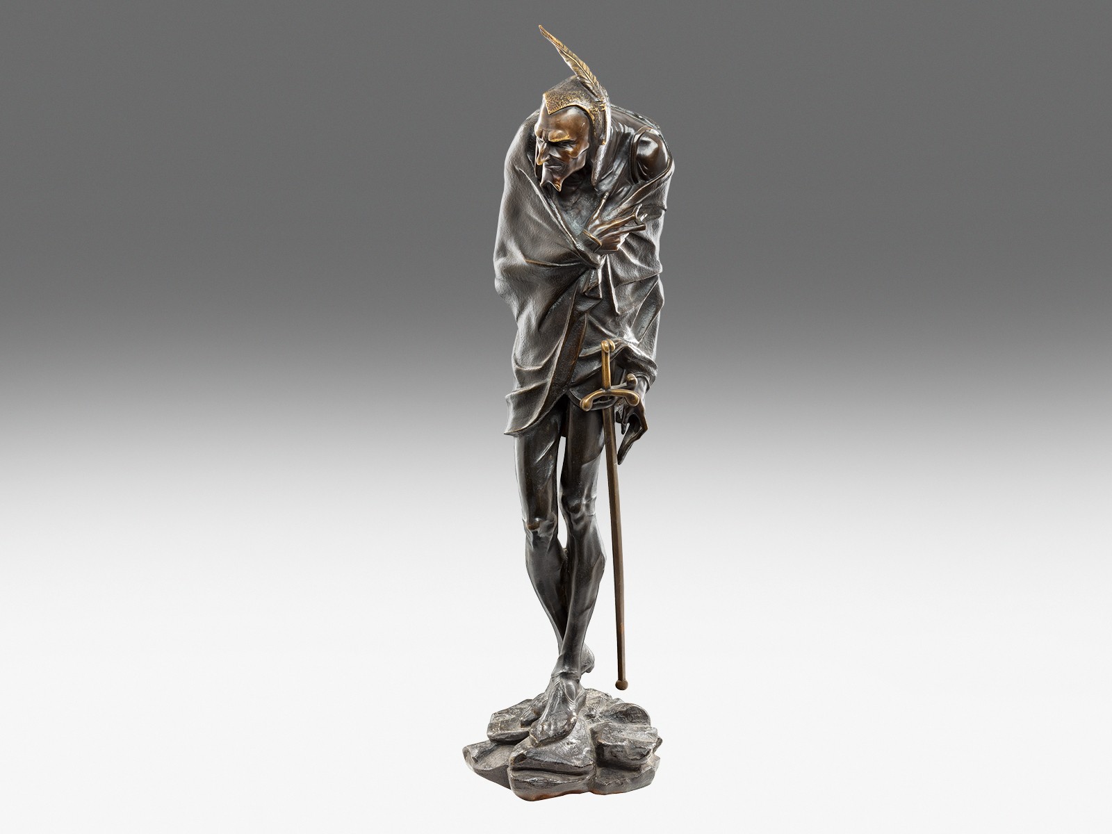Jacques Louis Gautier (Párizs, 1831 – ?) Mephisto Öntött, patinázott bronz. Talapzatán jelzett: J. Gautier. Francia, XIX. század második fele. M.: 85,5 cm