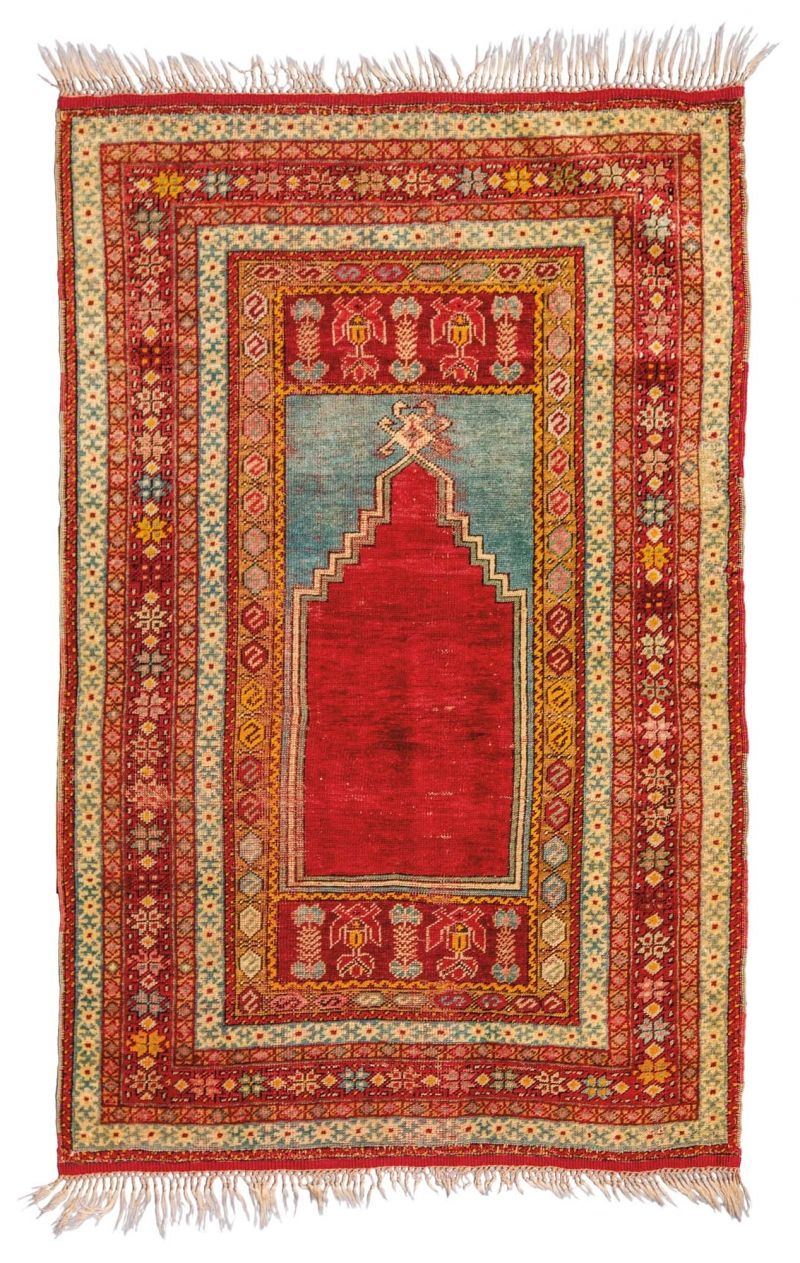 Műtárgy leírás - 1900 körül, gördesz csomózás, kopott, végein hiányos, 106*95 cm