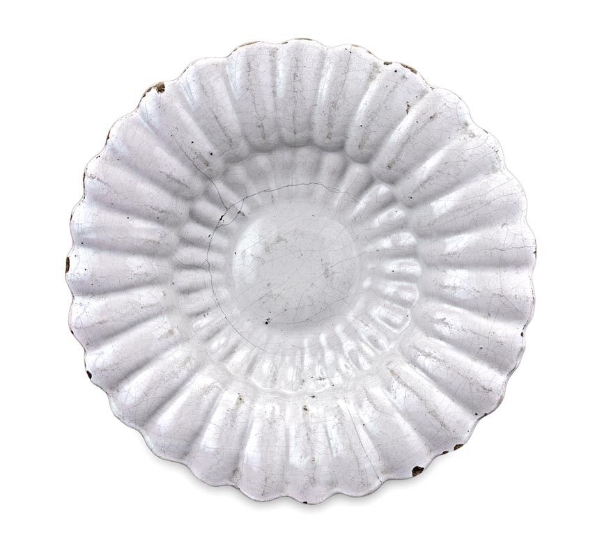 Habán, 17. sz.második fele, ónmázas fajansz, hajszálrepedéssel, d: 34 cm