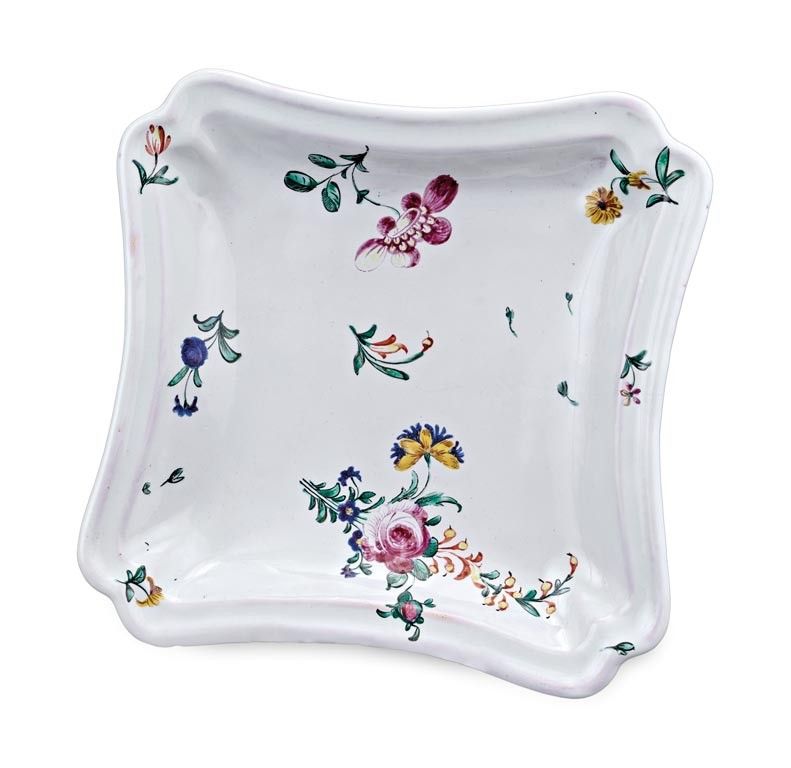 Holics, 18. sz. második fele, ónmázas fajansz, jelezve az alján, 22*22 cm