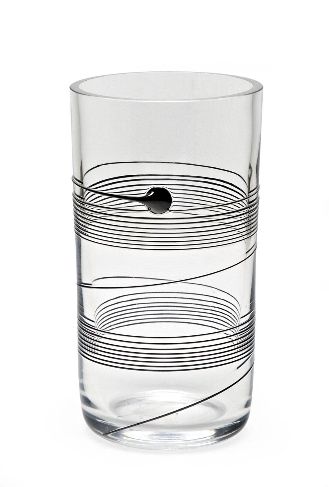 svéd, Kosta Glasbruk, Kosta Boda, Bertil Vallien (1938-) Spirál vázája, fújt üveg, üvegszalag rátéttel, formaszám: 48413, m: 18,5 cm