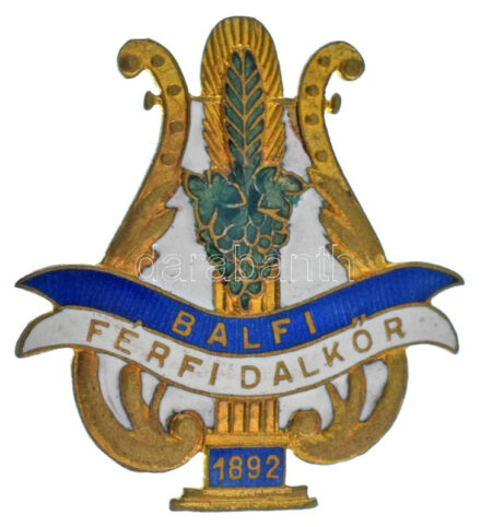 30521. tétel:~1910. "Balfi Férfi Dalkör 1892" zománcozott bronz dalos jelvény (36x39mm) T:UNC,AU / Hungary ~1910. "Men's Singing Club of Balf 1892" enameled bronze badge (36x39mm) C:UNC,AU